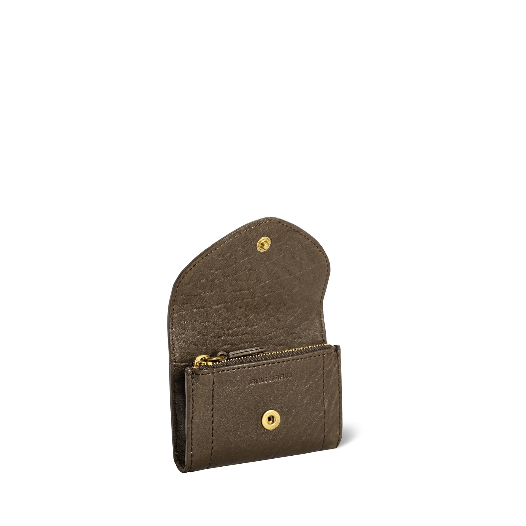 Ein Münzfach mit Reißverschluss. Ein Fach für Geldscheine. Sechs Kartenfächer. Ein aufgesetztes Fach auf der Innenseite und unter der Klappe.