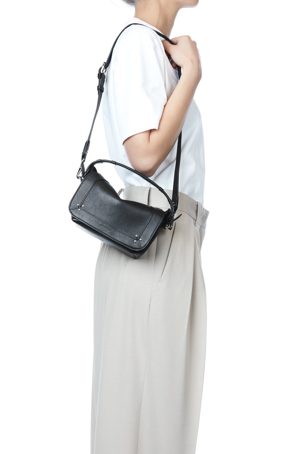 Ein gesteppter Ledereinsatz und ein langer, verstellbarer und abnehmbarer Schultergurt von 66 cm bis 97 cm (Größe S) und von 84 cm bis 115 cm (Größen M und L). Verschluss mit einem magnetischen Lederklappen. Eine Reißverschlusstasche außen auf der Rückseite der Tasche. Ein Schlüsselanhänger im Inneren der Tasche. Ein sauberes Design mit zahlreichen akribischen und unauffälligen handwerklichen Details und dekonstruierten Linien. Die präzise Arbeit an den vier Nähten der Griffe betont die Qualität und Sorgfalt, die jedem Detail gewidmet wird. Die Schultergurt- und Griffbefestigungen zeigen ein Relief, das an Pferdegeschirre erinnert, und verleihen eine Note von Eleganz und Tradition. Made in Italy Tasche 100 % Ziegenleder / Auskleidung 100 % Baumwolle Kann mit all unseren Schulterriemen kombiniert werden