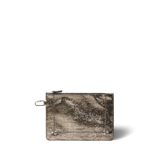 Durchgehender Reißverschluss. Ring zum Anhängen an den Karabiner an den Taschen der Marke.