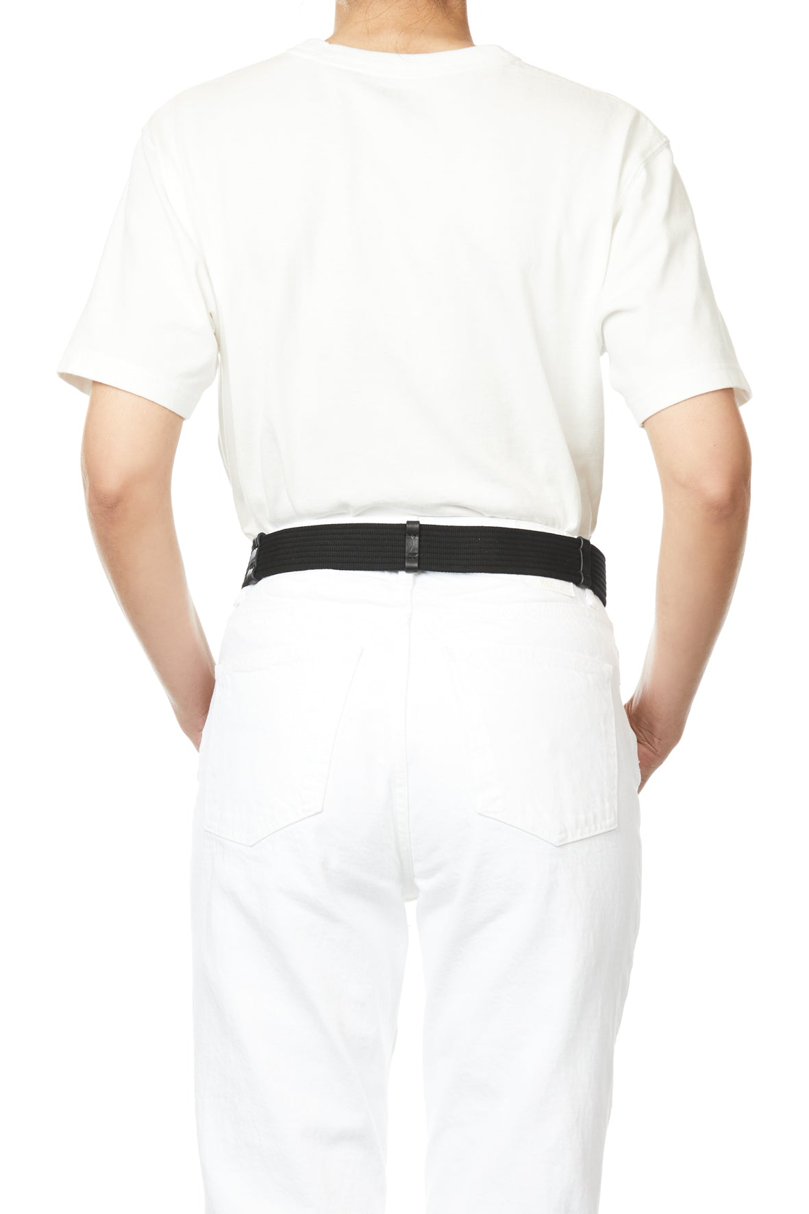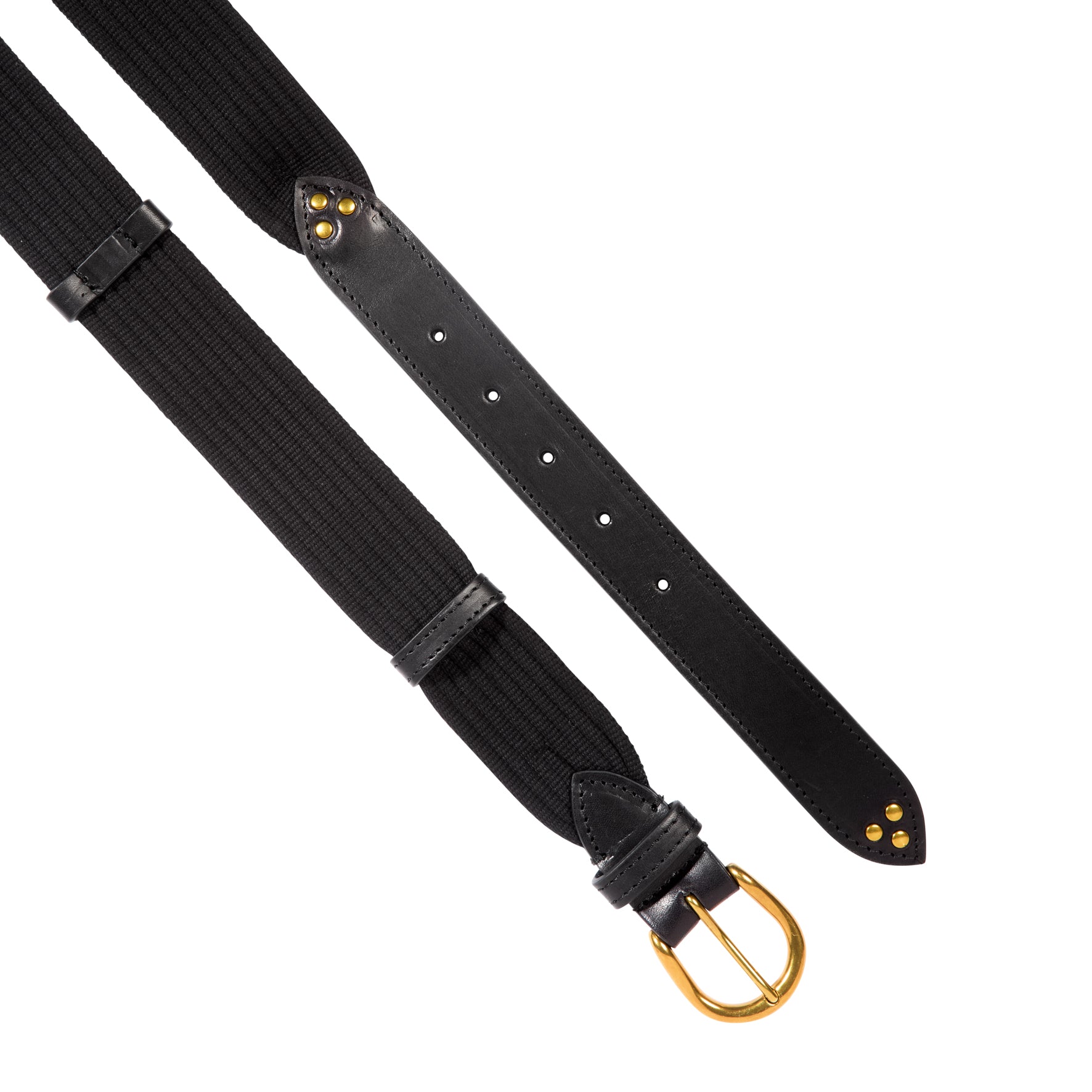 Coton garnie de cuir. Ceinture réglable. Porté hanche ou taille haute.