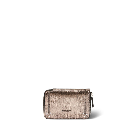 Fermeture entièrement zippée. Un compartiment monnaie zippé. Des emplacements cartes, billets, papiers d’identité.