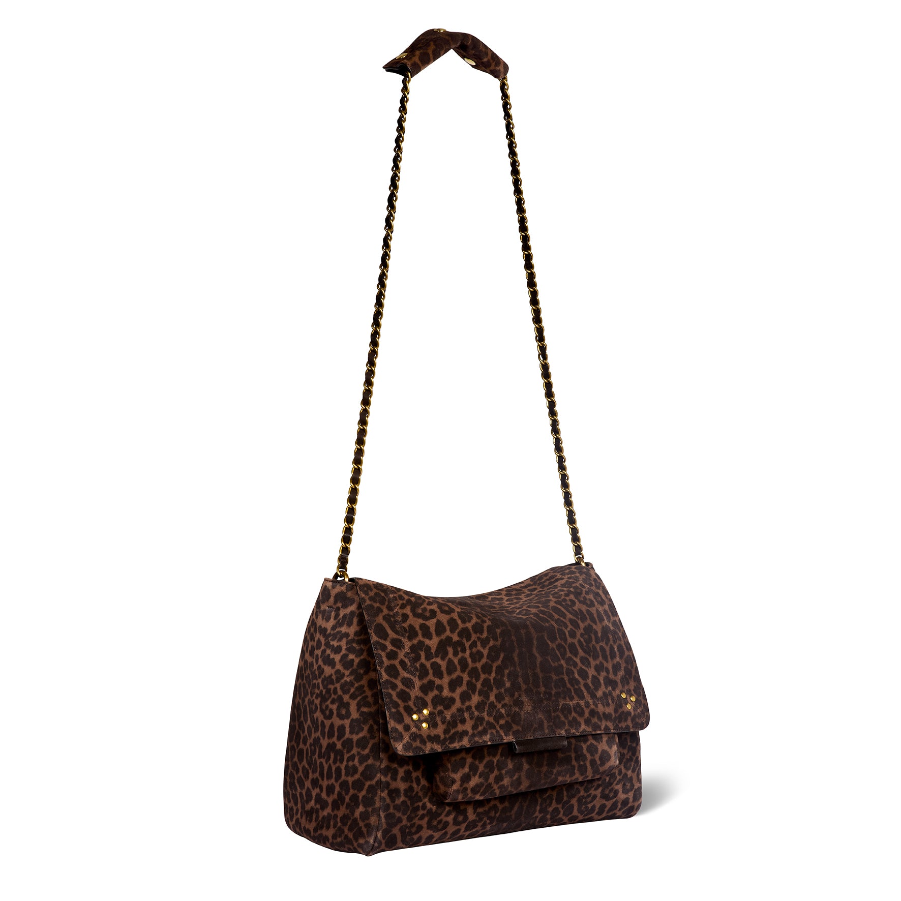 Une bandoulière chaîne et cuir amovible et ajustable; mesurant au maximum 105 cm, avec large patte épaule en cuir pressionnée. Rabat avec fermeture aimantée. Sac organisé avec un grand compartiment et une poche plaquée zippée. Un petite poche sous le rabat. Une poche plaquée zippée à l'arrière. Un lien porte-clés à l’intérieur du sac.
