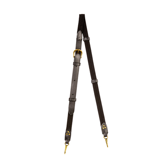 Bandoulière réglable en sangle de coton garnie de cuir, amovible grâce aux deux mousquetons. Peut être associée aux sacs Bobi, Lulu, Igor...