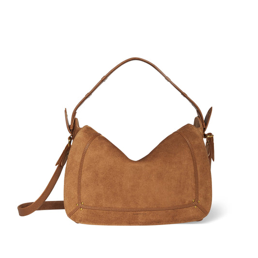 Une anse en cuir matelassée et une longue bandoulière réglable et amovible de 70 cm à 97 cm. Fermeture par un rabat en cuir aimanté. Une poche extérieure zippée à l'arrière du sac. Poche intérieur plaquée non zipée. Un lien porte-clés à l’intérieur du sac. Un design épure, aux nombreux détails artisanaux minutieux et discrets et aux lignes déstructurées. Le travail de précision sur les quatre piqûres des anses met en valeur la qualité et le soin apportés à chaque détail. Les enchapes de la bandoulière et des anses présentent un relief évoquant les harnais d'équitation, ajoutant une touche d'élégance et de tradition. Dimensions : L: 36 x 28 x 13 cm Made in Italy Sac 100% Chèvre / Doublure 100% Coton Peut être associé à toutes nos bandoulières